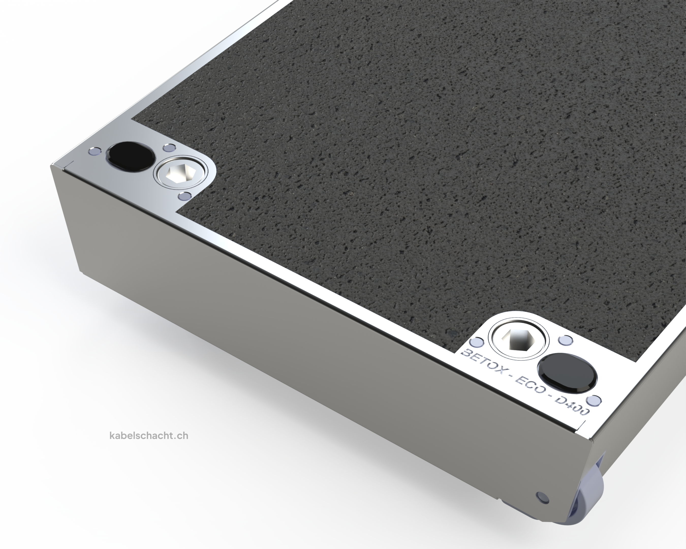 ECO Abdeckung Breite im Licht 100 und Länge im Licht 100 cm, Belastungsklasse B125 in Chromstahl V2A 1 Deckel inkl. eingebauter Rollen, ohne - Verschraubung und Belagsanschluss