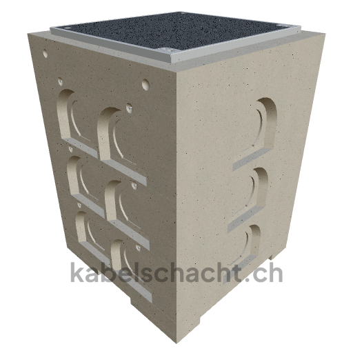 Modular cable duct, light width 80 x 80 cm, depth 126.3 cm, ECO cover, light width 80 cm and light length 80 cm, load class D400, 1 cover in chrome steel V2A incl. built-in rollers, 4-fold screw connection and covering connection.