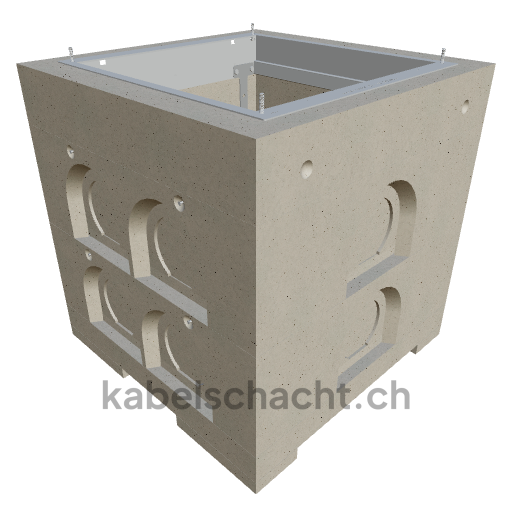 Modular cable duct, clear width 80 x 80 cm, depth 100.4 cm, ECO frame D400 prepared, clear width 80 cm and clear length 80 cm, in chrome steel V2A with built-in mounting adapter for charging station, incl. additional safety device that can be screwed into the lower duct element (on site).