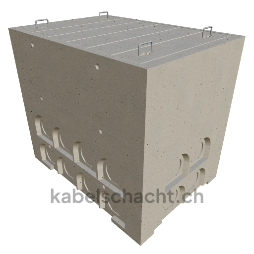Modular cable duct, internal dimensions 100 x 150 cm, depth 142 cm, concrete cover, internal width 100 cm and internal length 150 cm, load class A15 with 5 concrete covers, 2 including pull-out chrome steel support brackets.
