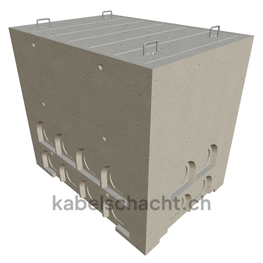 Modular cable duct, internal dimensions 100 x 150 cm, depth 142 cm, concrete cover, internal width 100 cm and internal length 150 cm, load class A15 with 6 concrete covers, 2 including pull-out chrome steel support brackets.
