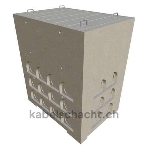 Modular cable duct, internal dimensions 100 x 150 cm, depth 186 cm, concrete cover, internal width 100 cm and internal length 150 cm, load class A15 with 6 concrete covers, 2 including pull-out chrome steel support brackets.