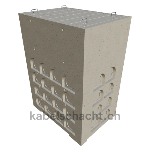 Modular cable duct, internal dimensions 100 x 150 cm, depth 220 cm, concrete cover, internal width 100 cm and internal length 150 cm, load class A15 with 6 concrete covers, 2 including pull-out chrome steel support brackets.