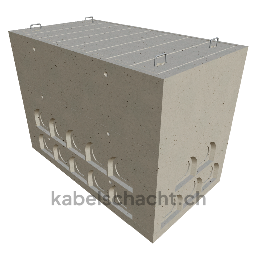 Modular cable duct, internal dimensions 100 x 200 cm, depth 152 cm, concrete cover, internal width 100 cm and internal length 200 cm, load class A15 with 8 concrete covers, 2 including pull-out chrome steel support brackets.