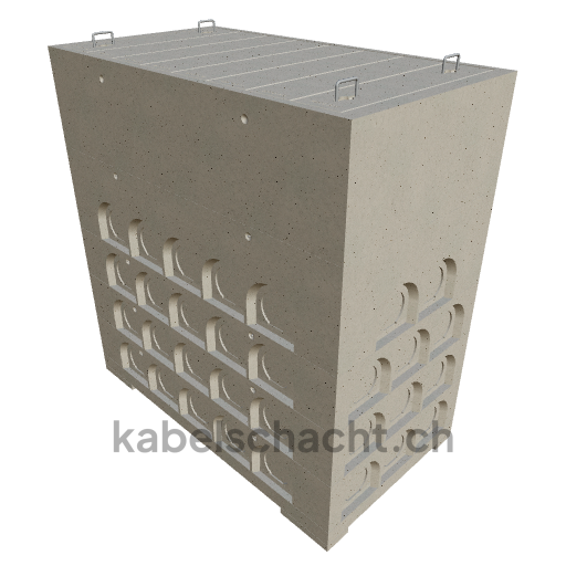 Modular cable duct, internal dimensions 100 x 200 cm, depth 220 cm, concrete cover, internal width 100 cm and internal length 200 cm, load class A15 with 8 concrete covers, 2 including pull-out chrome steel support brackets.