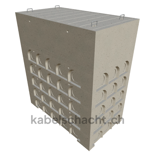 Modular cable duct, internal dimensions 100 x 200 cm, depth 234 cm, concrete cover, internal width 100 cm and internal length 200 cm, load class A15 with 8 concrete covers, 2 including pull-out chrome steel support brackets.