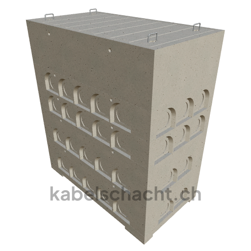 Modular cable duct, internal dimensions 100 x 200 cm, depth 240 cm, concrete cover, internal width 100 cm and internal length 200 cm, load class A15 with 8 concrete covers, 2 including pull-out chrome steel support brackets.