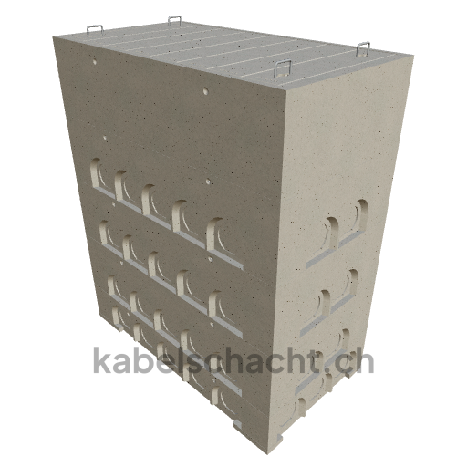Modular cable duct, internal dimensions 100 x 200 cm, depth 250 cm, concrete cover, internal width 100 cm and internal length 200 cm, load class A15 with 8 concrete covers, 2 including pull-out chrome steel support brackets.
