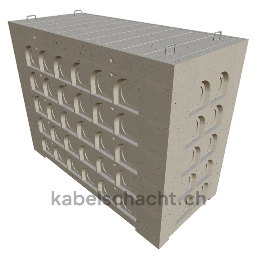 Modular cable duct, internal dimensions 100 x 250 cm, depth 195 cm, concrete cover, internal width 100 cm and internal length 250 cm, load class A15 with 10 concrete covers, 2 including pull-out chrome steel support brackets.