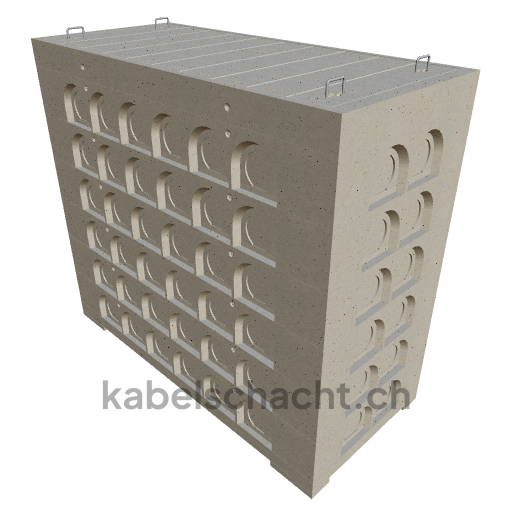 Modular cable duct, internal dimensions 100 x 250 cm, depth 229 cm, concrete cover, internal width 100 cm and internal length 250 cm, load class A15 with 10 concrete covers, 2 including pull-out chrome steel support brackets.