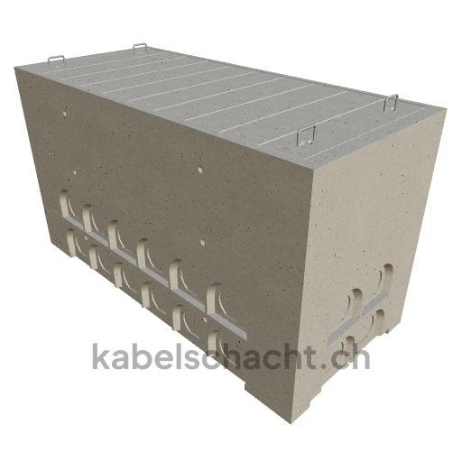 Modular cable duct, clear width 100 x 250 cm, depth 142 cm, concrete cover, clear width 100 cm and clear length 250 cm, load class A15 with 10 concrete covers, 2 including pull-out chrome steel support brackets.