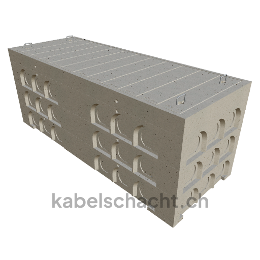 Modular cable duct, internal dimensions 100 x 300 cm, depth 117 cm, concrete cover, internal width 100 cm and internal length 300 cm, load class A15 with 12 concrete covers, 2 including pull-out chrome steel support brackets.