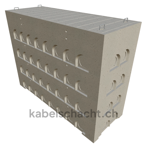 Modular cable duct, clear width 100 x 300 cm, depth 231 cm, concrete cover, clear width 100 cm and clear length 300 cm, load class A15 with 12 concrete covers, 2 including pull-out chrome steel support brackets.