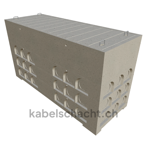 Modular cable duct, clear width 100 x 300 cm, depth 166 cm, concrete cover, clear width 100 cm and clear length 300 cm, load class A15 with 10 concrete covers, 2 including pull-out chrome steel support brackets.