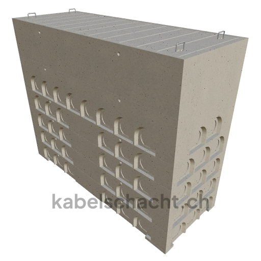 Modular cable duct, clear width 100 x 300 cm, depth 244 cm, concrete cover, clear width 100 cm and clear length 300 cm, load class A15 with 10 concrete covers, 2 including pull-out chrome steel support brackets.