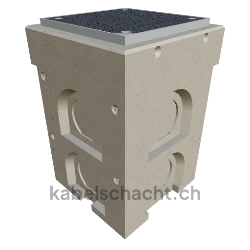 Modular cable duct, internal dimensions 40 x 40 cm, depth 85 cm, TrapeX cover, internal width 40 cm and internal length 40 cm, load class B125 with 1 chrome steel cover, concreted up to 3 cm above ground level.