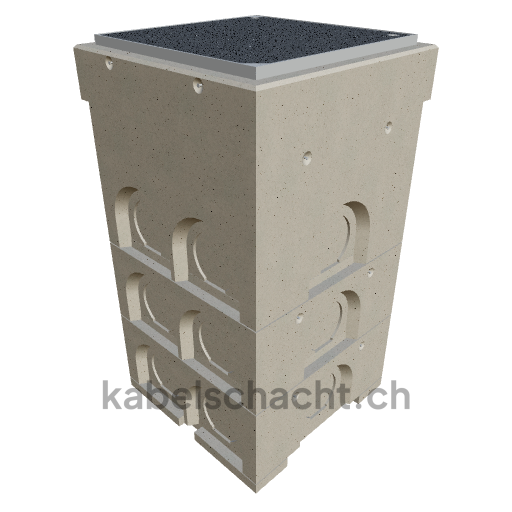 Modular cable duct, opening dimensions 60 x 60 cm, depth 139 cm, TrapeX cover, width in opening 60 cm and length in opening 60 cm, load class B125 with 1 chrome steel cover and 4 lifting openings, covering version frame up to 3 cm OK and cover black