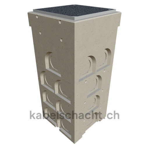 Modular cable duct, internal dimensions 60 x 60 cm, depth 173 cm, TrapeX cover, internal width 60 cm and internal length 60 cm, load class B125 with 1 chrome steel cover and 4 lifting openings, covering version frame up to 3 cm OK and cover black