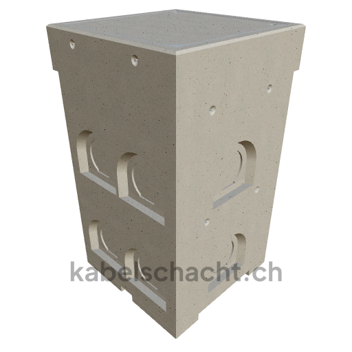Modular cable duct, internal dimensions 60 x 60 cm, depth 135 cm, TrapeX cover, internal width 60 cm and internal length 60 cm, load class B125 with 1 chrome steel cover and 4 lifting openings.