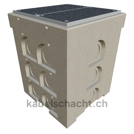 Modular cable duct, clear width 80 x 80 cm, depth 119 cm, TrapeX cover, clear width 80 cm and clear length 80 cm, load class B125 with 2 chrome steel covers and 4 lifting openings, incl. 1 removable chrome steel crossbar, concreted up to 3 cm OK.