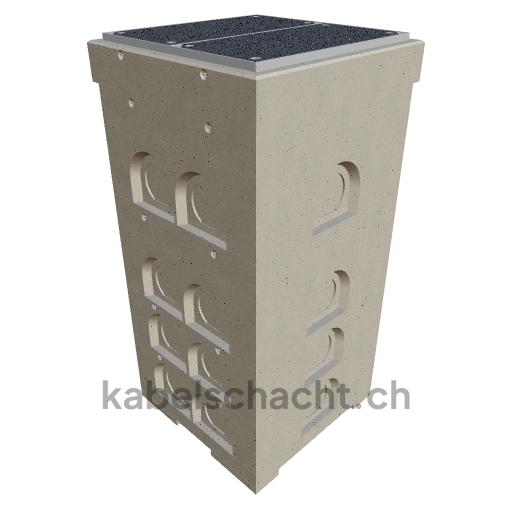 Modular cable duct, internal dimensions 80 x 80 cm, depth 203 cm, TrapeX cover, internal width 80 cm and internal length 80 cm, load class B125 with 2 chrome steel covers and 4 lifting openings, incl. 1 removable chrome steel crossbar, concreted up to 3 cm OK.