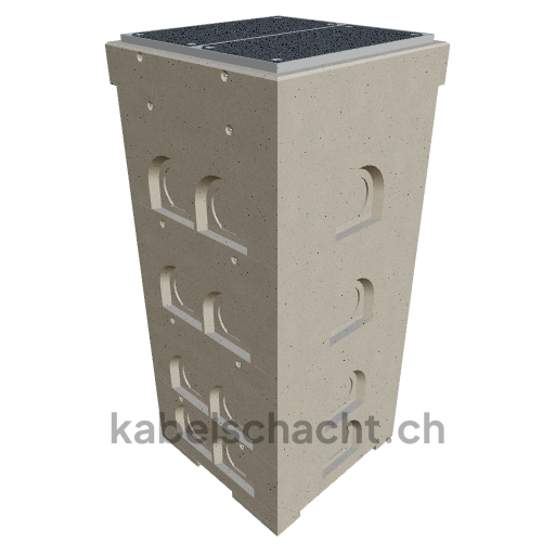 Modular cable duct, internal dimensions 80 x 80 cm, depth 223 cm, TrapeX cover, internal width 80 cm and internal length 80 cm, load class B125 with 2 chrome steel covers and 4 lifting openings, incl. 1 removable chrome steel crossbar, concreted up to 3 cm OK.