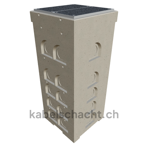 Modular cable duct, internal dimensions 80 x 80 cm, depth 237 cm, TrapeX cover, internal width 80 cm and internal length 80 cm, load class B125 with 2 chrome steel covers and 4 lifting openings, incl. 1 removable chrome steel crossbar, concreted up to 3 cm OK.