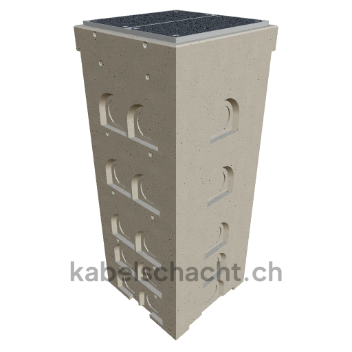 Modular cable duct, internal dimensions 80 x 80 cm, depth 247 cm, TrapeX cover, internal width 80 cm and internal length 80 cm, load class B125 with 2 chrome steel covers and 4 lifting openings, incl. 1 removable chrome steel crossbar, concreted up to 3 cm OK.