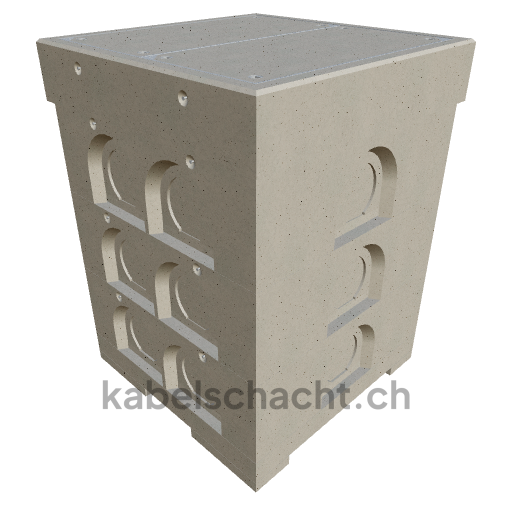 Modular cable duct, internal dimensions 80 x 80 cm, depth 129 cm, TrapeX cover, internal width 80 cm and internal length 80 cm, load class B125 with 2 chrome steel covers and 4 lifting openings, including 1 removable chrome steel crossbar.