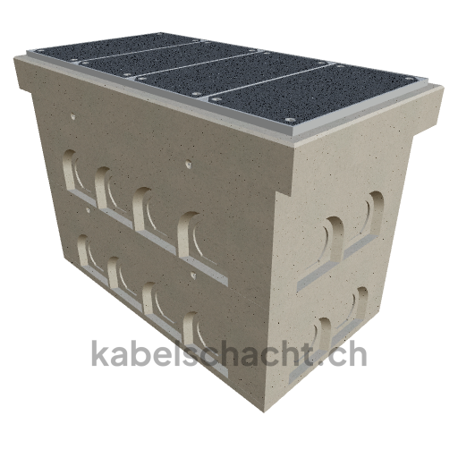 Modular cable duct, clear width 80 x 160 cm, depth 125 cm, TrapeX cover, clear width 80 cm and clear length 160 cm, load class B125 with 4 chrome steel covers and 4 lifting openings, incl. 3 removable chrome steel crossbars, concreted up to 3 cm OK.