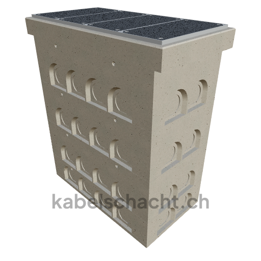 Modular cable duct, clear width 80 x 160 cm, depth 213 cm, TrapeX cover, clear width 80 cm and clear length 160 cm, load class B125 with 4 chrome steel covers and 4 lifting openings, incl. 3 removable chrome steel crossbars, concreted up to 3 cm OK.