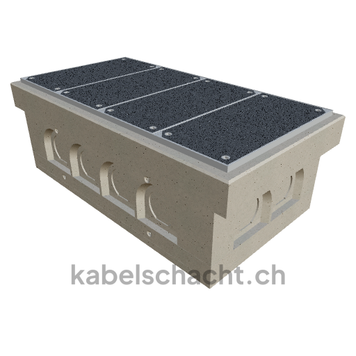 Modular cable duct, clear width 80 x 160 cm, depth 61 cm, TrapeX cover, clear width 80 cm and clear length 160 cm, load class B125 with 4 chrome steel covers and 4 lifting openings, incl. 3 removable chrome steel crossbars, concreted up to 3 cm OK.