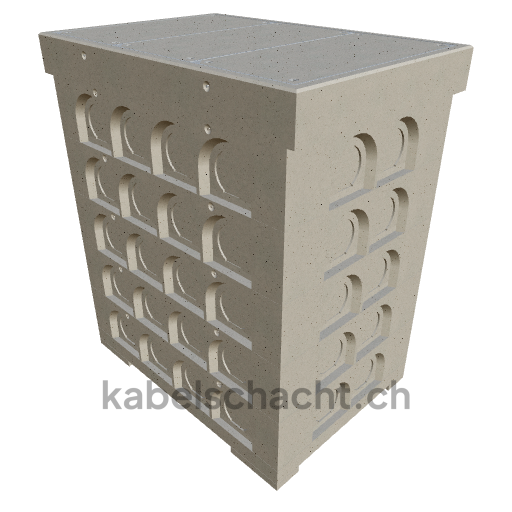 Modular cable duct, internal dimensions 100 x 150 cm, depth 197 cm, TrapeX cover, internal width 100 cm and internal length 150 cm, load class B125 with 3 chrome steel covers and 4 lifting openings, incl. 2 removable chrome steel crossbars.