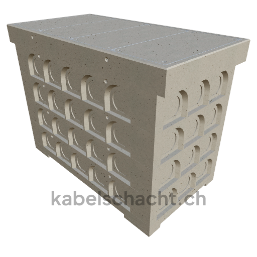 Modular cable duct, clear width 100 x 200 cm, depth 163 cm, TrapeX cover, clear width 102 cm and clear length 200 cm, load class B125 with 4 chrome steel covers and 4 lifting openings, incl. 3 removable chrome steel crossbars.