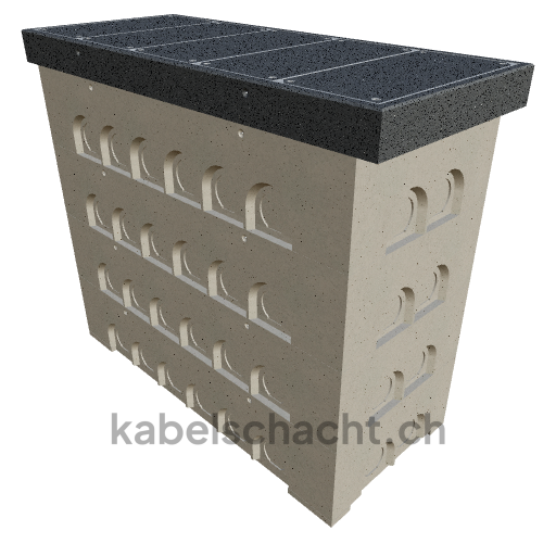 Modular cable duct, clear width 100 x 250 cm, depth 233 cm, TrapeX cover, clear width 102 cm and clear length 250 cm, load class B125 with 5 chrome steel covers and 4 lifting openings, incl. 4 removable chrome steel crossbars.
