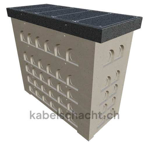 Modular cable duct, light widths 100 x 250 cm, depth 237 cm, TrapeX cover, width in light 102 and length in light 250 cm, load class B125 with 5 chrome steel covers and 4 lifting openings, incl. 4 removable chrome steel crossbars.