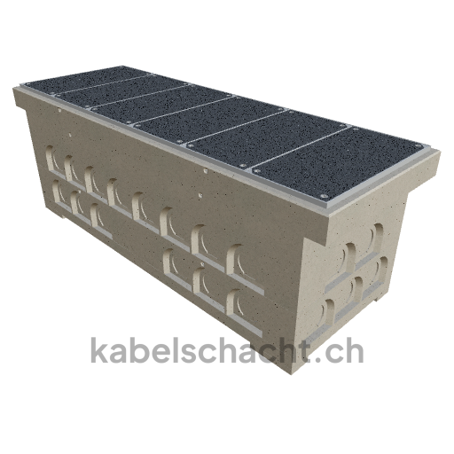Modular cable duct, clear width 100 x 300 cm, depth 115 cm, TrapeX cover, covering version, clear width 100 cm and clear length 300 cm, load class B125 with 6 chrome steel covers and 4 lifting openings, incl. 5 removable chrome steel crossbars, concreted up to 3 cm.