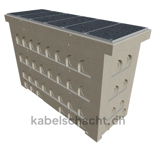 Modular cable duct, clear width 100 x 300 cm, depth 213 cm, TrapeX cover, covering version, clear width 100 cm and clear length 300 cm, load class B125 with 6 chrome steel covers and 4 lifting openings, incl. 5 removable chrome steel crossbars, concreted up to 3 cm.