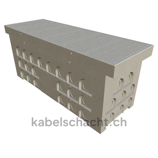 Modular cable duct, clear width 100 x 300 cm, depth 139 cm, TrapeX cover, clear width 100 cm and clear length 300 cm, load class B125 with 6 chrome steel covers and 4 lifting openings, incl. 5 removable chrome steel crossbars.