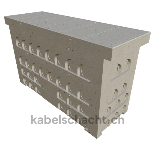 Modular cable duct, clear width 100 x 300 cm, depth 193 cm, TrapeX cover, clear width 100 cm and clear length 300 cm, load class B125 with 6 chrome steel covers and 4 lifting openings, incl. 5 removable chrome steel crossbars.