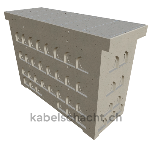 Modular cable duct, clear width 100 x 300 cm, depth 223 cm, TrapeX cover, clear width 100 cm and clear length 300 cm, load class B125 with 6 chrome steel covers and 4 lifting openings, incl. 5 removable chrome steel crossbars.