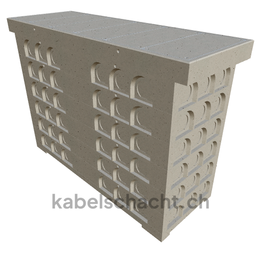 Modular cable duct, clear width 100 x 300 cm, depth 231 cm, TrapeX cover, clear width 100 cm and clear length 300 cm, load class B125 with 6 chrome steel covers and 4 lifting openings, incl. 5 removable chrome steel crossbars.