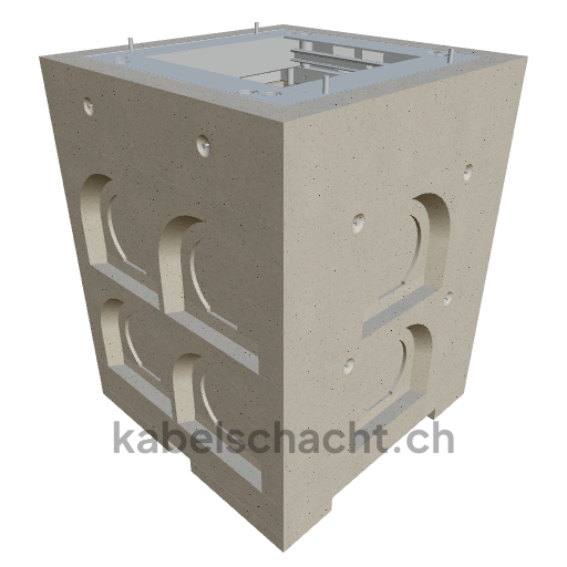 Gaine de câbles modulaire, dimensions intérieures 60 x 60 cm, profondeur 92,3 cm, cadre ECO D400 préparé, largeur intérieure 60 cm et longueur intérieure 60 cm, en acier chromé V2A avec adaptateur intégré pour station de recharge - pivotant à 90°, avec sécurité supplémentaire à visser dans l'élément inférieur de la gaine (à fournir par le client).