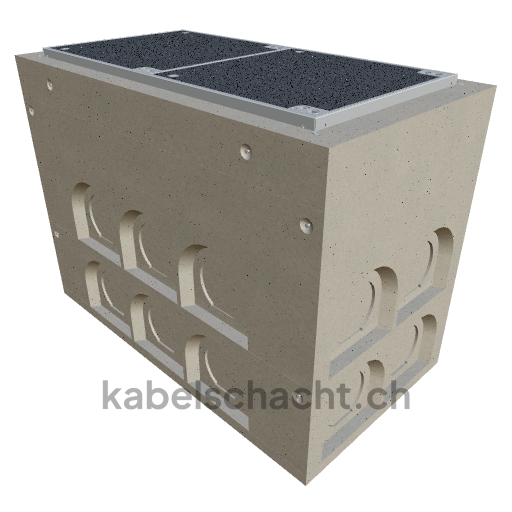 Gaine de câbles modulaire, dimensions intérieures 60 x 130 cm, profondeur 102,3 cm, couvercle ECO, largeur intérieure 60 cm et longueur intérieure 130 cm, classe de charge D400, en acier chromé V2A, avec 2 couvercles à roulettes intégrées, 4 vis et raccordement au revêtement. Cadre bétonné jusqu'à 3 cm OK, avec nivellement en hauteur intégré du cadre.