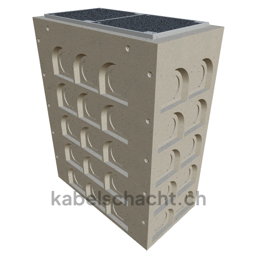 Gaine technique modulaire Dimensions intérieures 60 x 130 cm Profondeur 184,3 cm Couvercle ECO Largeur intérieure 60 et longueur intérieure 130 cm, classe de charge D400 en acier chromé V2A, avec 2 couvercles à roulettes intégrées, 4 vis et raccordement au revêtement. Cadre bétonné jusqu'à 3 cm OK, avec nivellement en hauteur intégré du cadre.