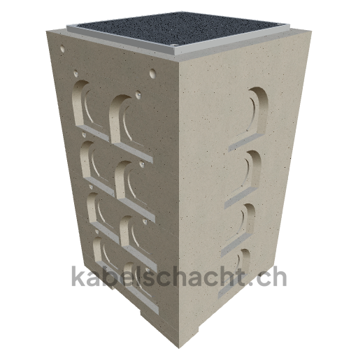 Gaine de câbles modulaire, dimensions intérieures 80 x 80 cm, profondeur 160,3 cm, cache ECO, largeur intérieure 80 cm et longueur intérieure 80 cm, classe de charge B125, en acier chromé V2A, roulettes intégrées, sans visserie ni raccordement au revêtement.
