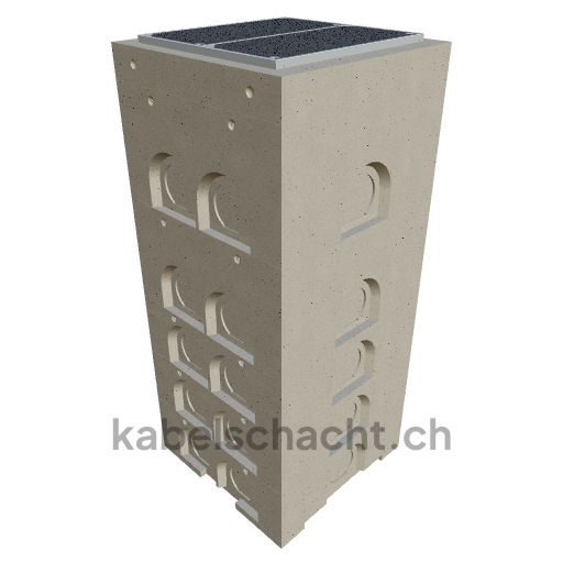 Gaine de câbles modulaire, dimensions intérieures 80 x 80 cm, profondeur 224,3 cm, cache ECO, largeur intérieure 80 cm et longueur intérieure 80 cm, classe de charge B125, en acier chromé V2A, 2 couvercles avec roulettes intégrées, sans raccord vissé ni raccordement au revêtement.