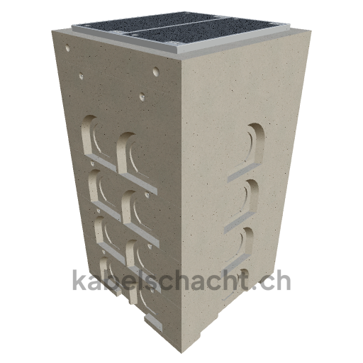 Gaine de câbles modulaire, dimensions intérieures 80 x 80 cm, profondeur 170,3 cm, couvercle ECO, largeur intérieure 80 cm et longueur intérieure 80 cm, classe de charge C250, 2 couvercles en acier chromé V2A avec roulettes intégrées, fixation à 4 vis et raccordement au revêtement.