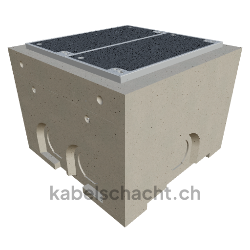 Gaine de câbles modulaire Dimensions intérieures 80 x 80 cm Profondeur 68,3 cm Couvercle ECO Largeur intérieure 80 et longueur intérieure 80 cm, classe de charge C250 2 couvercles en acier chromé V2A avec roulettes intégrées, fixation à 4 vis et raccordement au revêtement