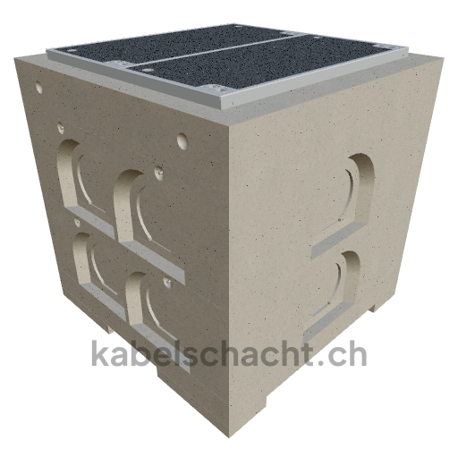 Gaine de câbles modulaire Dimensions intérieures 80 x 80 cm Profondeur 92,3 cm Couvercle ECO Largeur intérieure 80 et longueur intérieure 80 cm, classe de charge C250 2 couvercles en acier chromé V2A avec roulettes intégrées, fixation à 4 vis et raccordement au revêtement